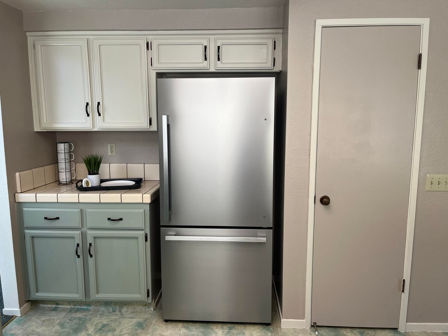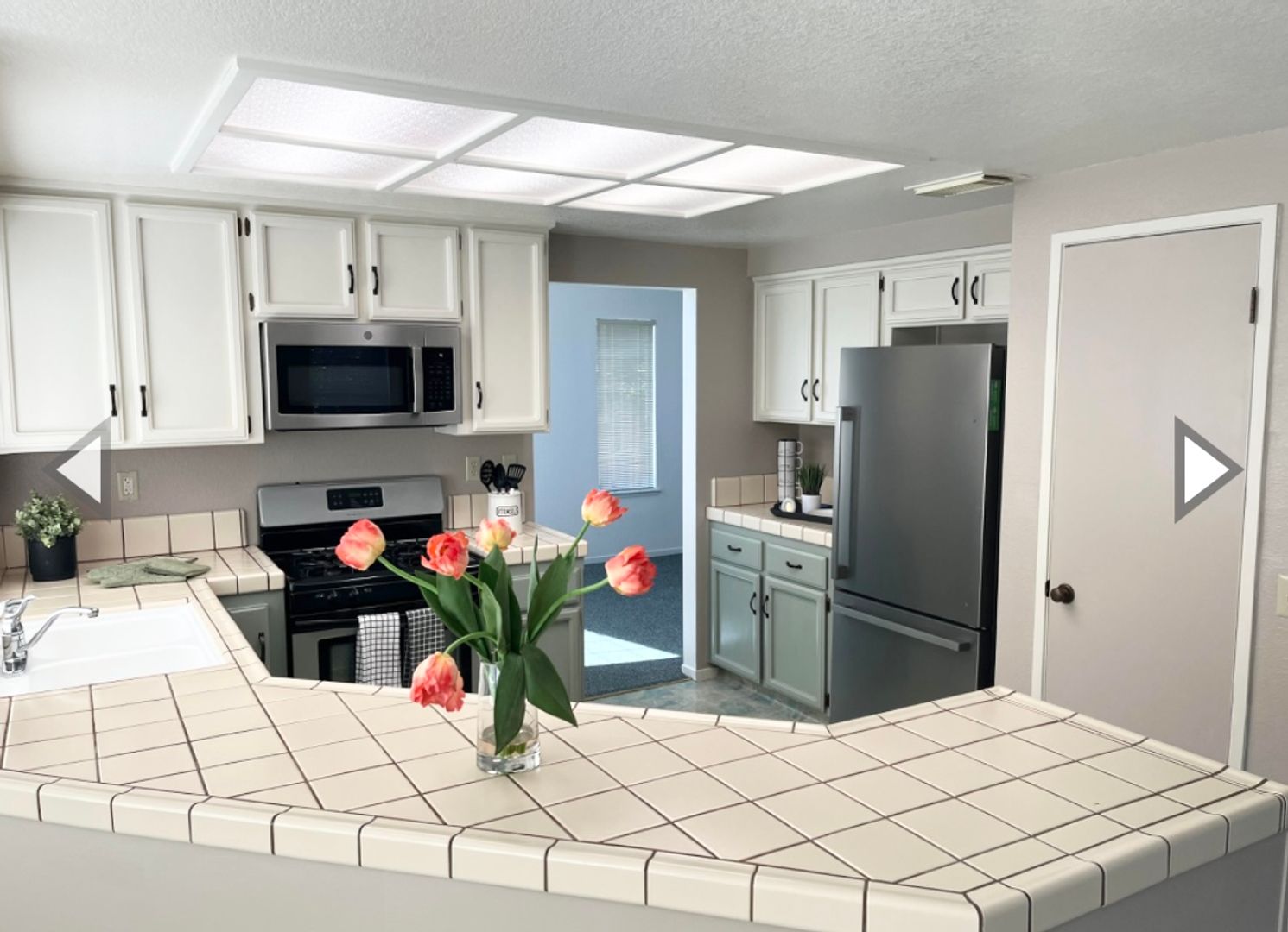 Kitchen with stainless steel appliances, large pantry