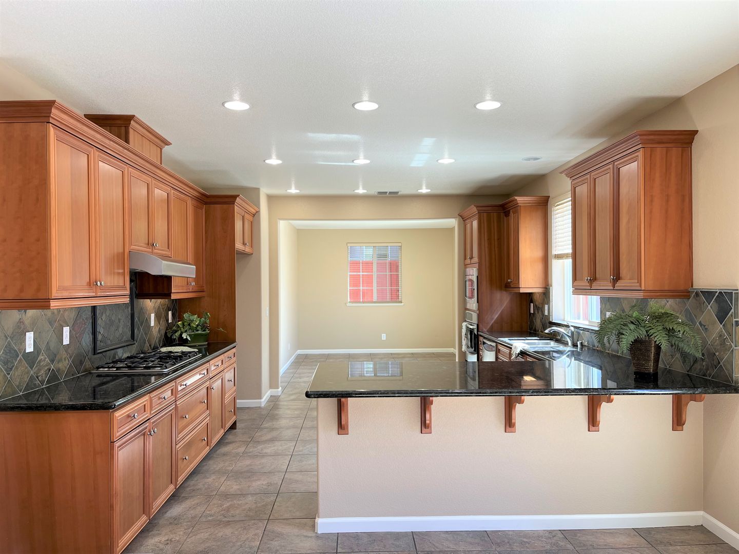 Nice kitchen with granite countertops and stainless steel appliances