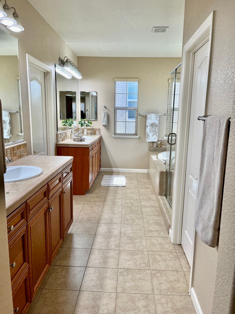 Spacious master suite has large walk-in closet, separate tub and shower